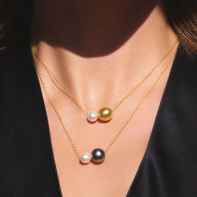K18 10mm ゴールド/黒蝶・8mmアコヤパール ペンダント